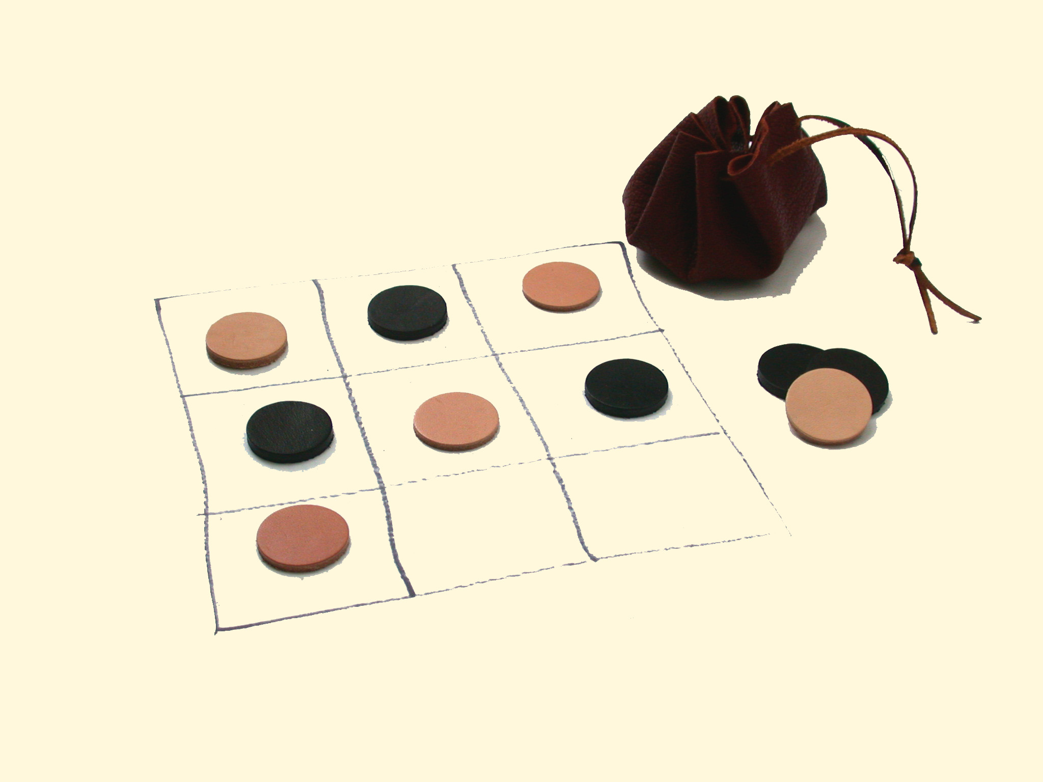 Egal ob Drinnen oder Draußen - mit unserem Lederbeutel, 4 Schwarzen und 4 Natur Ledersteinen, kann es überall gespielt werden. Eine kurze Spielanleitung ist auch dabei.