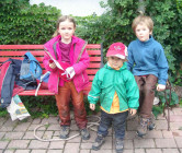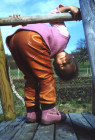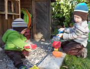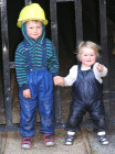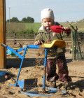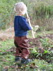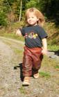 Kinderlederhosen aktiv im Einsatz. Waldkindergarten, Bauernhof, Garten - immer passend angezogen.
